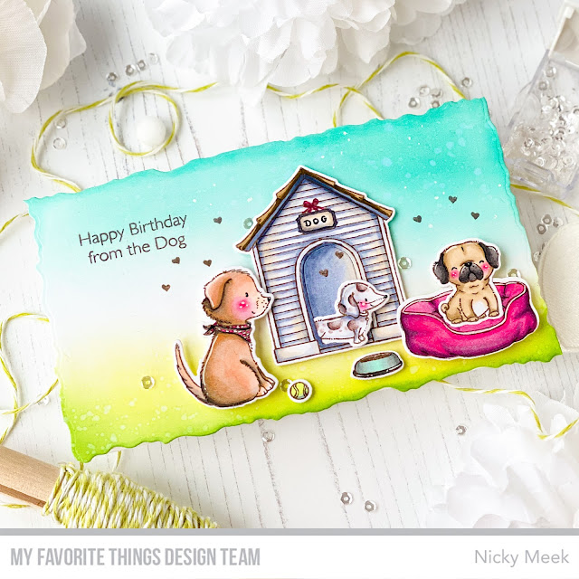 The December release from MFT Stamps is now available for purchase and I'm sharing a card made using the brand new Stacey Yacula illustrated stamp set Pawsitive Vibes. Here's what I used in the making of this card:-